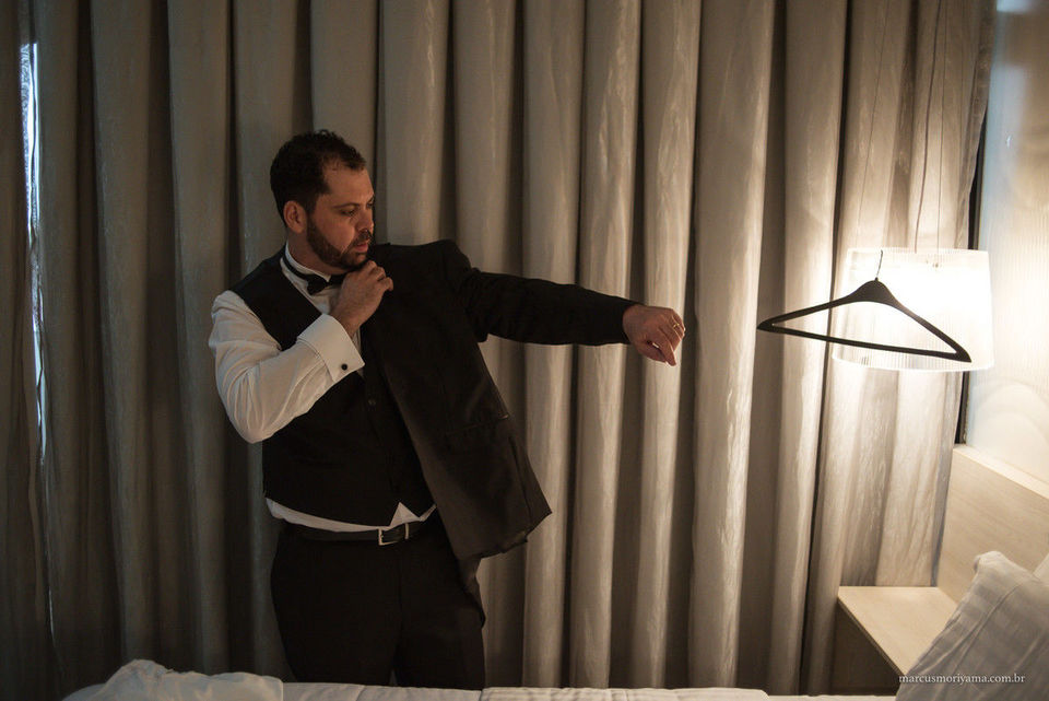Foi lá que tive o primeiro contato com o casal pessoalmente. Ele reside em Londres há mais de 20 anos. Um Chef de cozinha agitado, que pela profissão fazia tudo muito depressa. O interessante que suas roupas de casamento (terno, camisa, sapato) haviam sido compradas há exato 1 ano e, até então, não tinham sido tiradas do plástico (Rsrsrs).